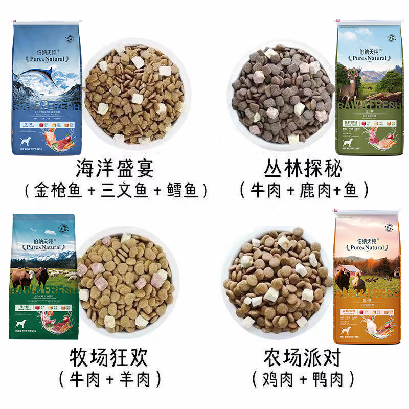 Bernatian Pure Freeze-dried Dog Food 12KG Fresh Jungle Scouting Marine Feast Pasture Rave Rave Into Dog Puppies