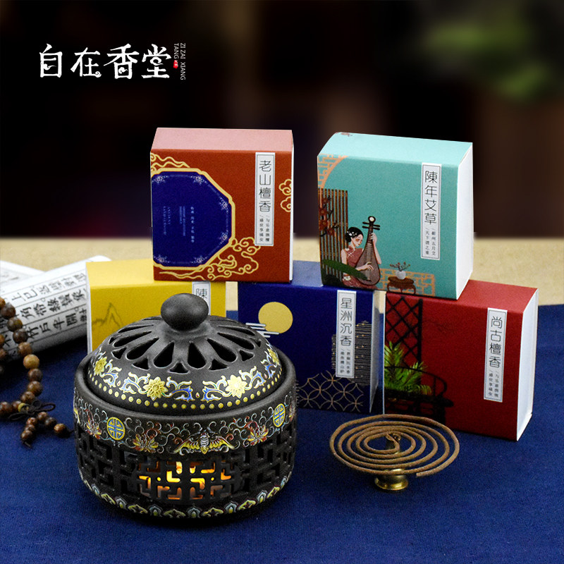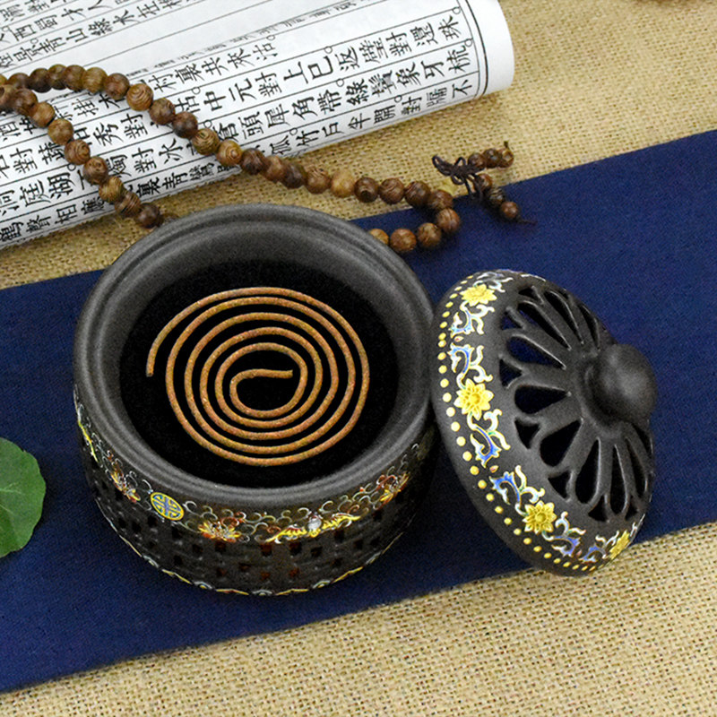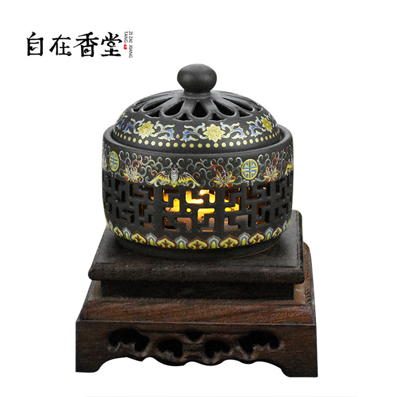 Zizai Xiangtang Ceramic plate incense line incense burner Creative household incense burner Interior decoration Enamel night lamp incense burner