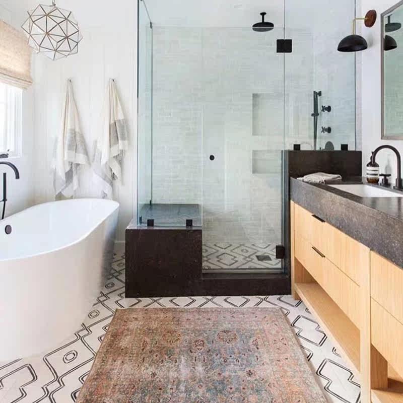 2019 New ins Styles Flowers NORDIC MODERN BLACK AND WHITE GEOMETRIC SMALL FLOWER BRICK 200x200 KITCHEN GUARD BALCONY BRICK