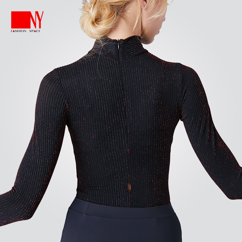 NY Na Yi new modern dance suit Women's dance suit color strip high collar with body suit practice suit long sleeve national standard dance