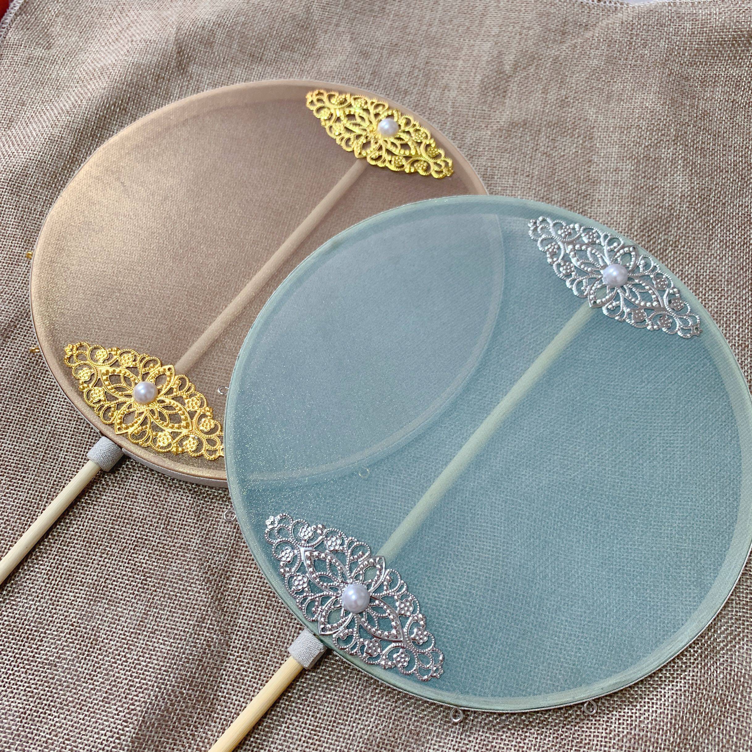 (Bronzing)Ancient style fan DIY material pack Willow branch hot silver Chiffon fabric Hanfu cloth