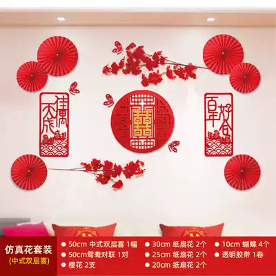 Chinese style happy words flower wedding room decoration wedding supplies Daquan wedding celebration bedroom living room background wall decoration set