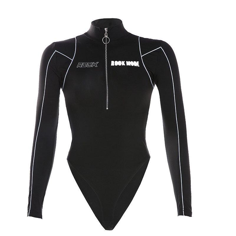 Cycling clothing reflective strip black zipper high collar one-piece top Women's long-sleeved tight wild show thin outside wear T-shirt tide