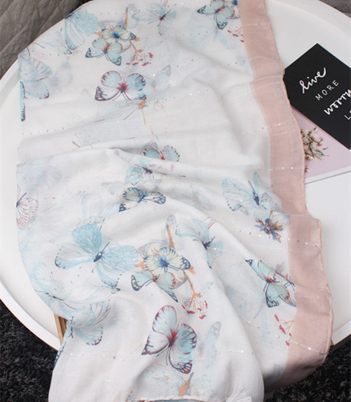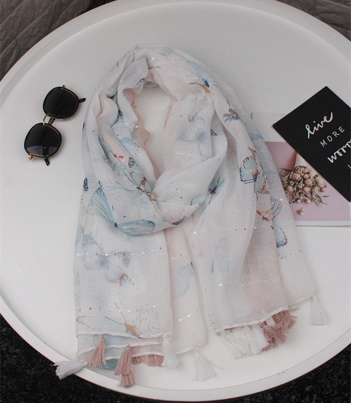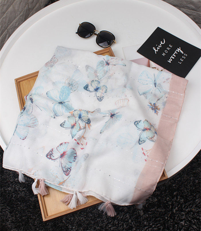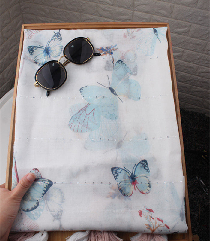 Spring and summer style Art and literature Little fresh and bright sheet butterfly flow Su cotton linen scarves for holiday tourist seaside beach towels Ms. thin