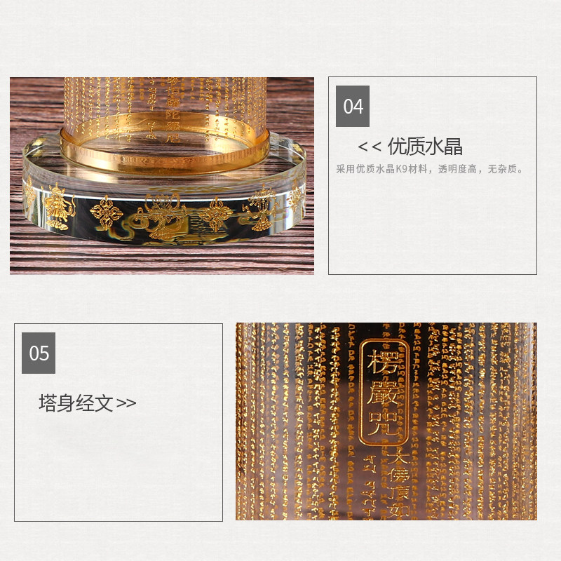 Large-caliber crystal medium-sized relic pagoda Bodhi pagoda decoration treasure case printed with Tibetan relic pagoda Shurangyan mantra nectar pill