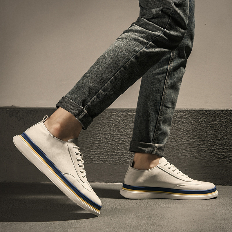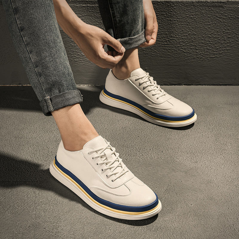 2022 New Small White Shoes Men's Shoes Summer Tide Shoes Casual Shoes Son White Breathable Leather Shoes 100 Hitch Plate Shoes