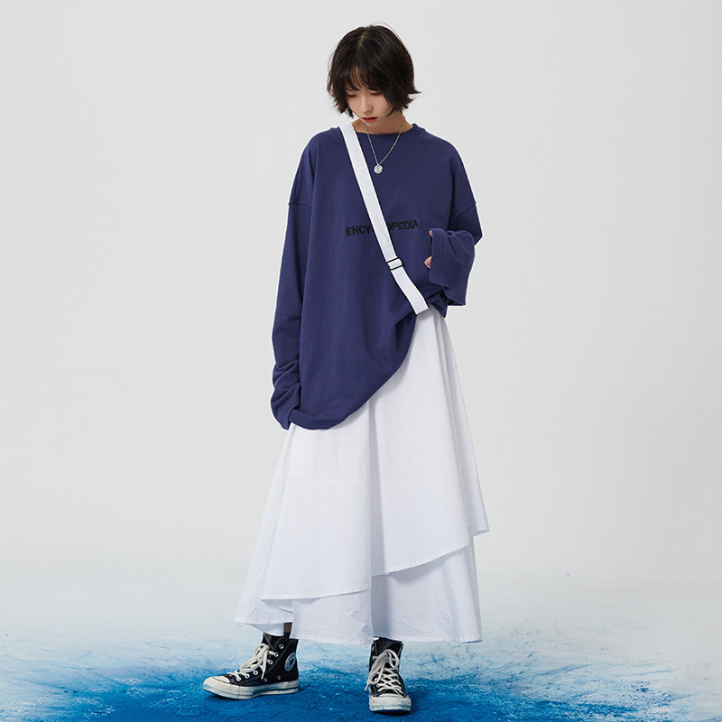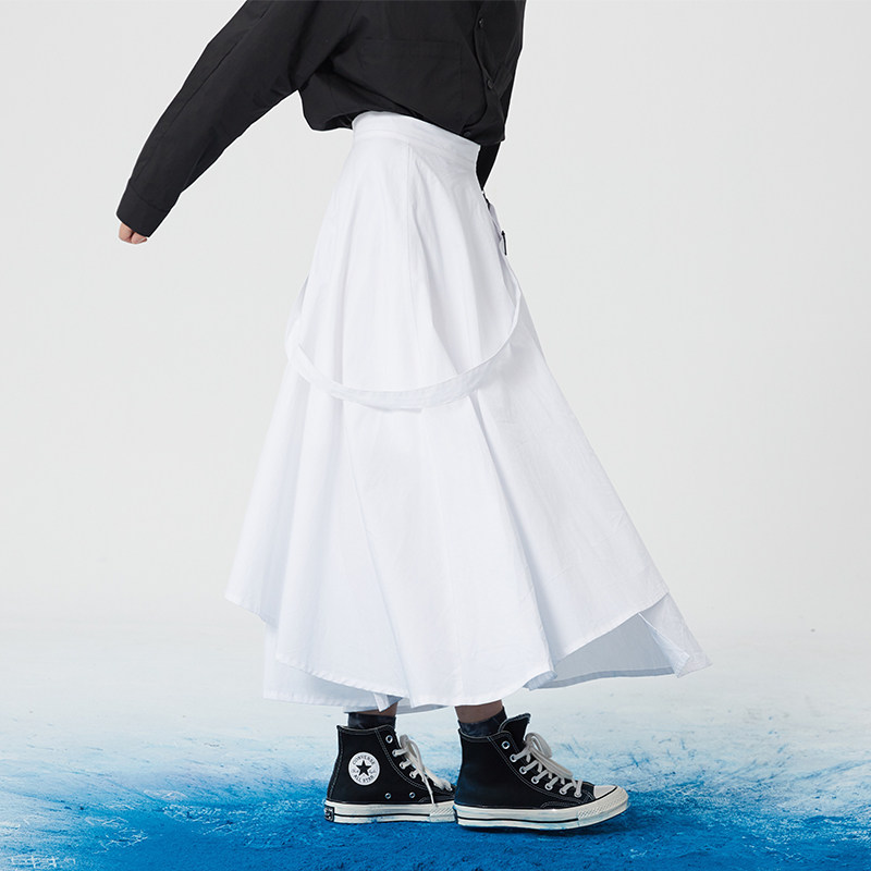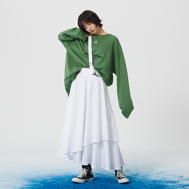 There is a gravitational museum for all of its kind) Laminated high waist asymmetrical long skirt woman medium long version of a half body skirt dark black wind skirt