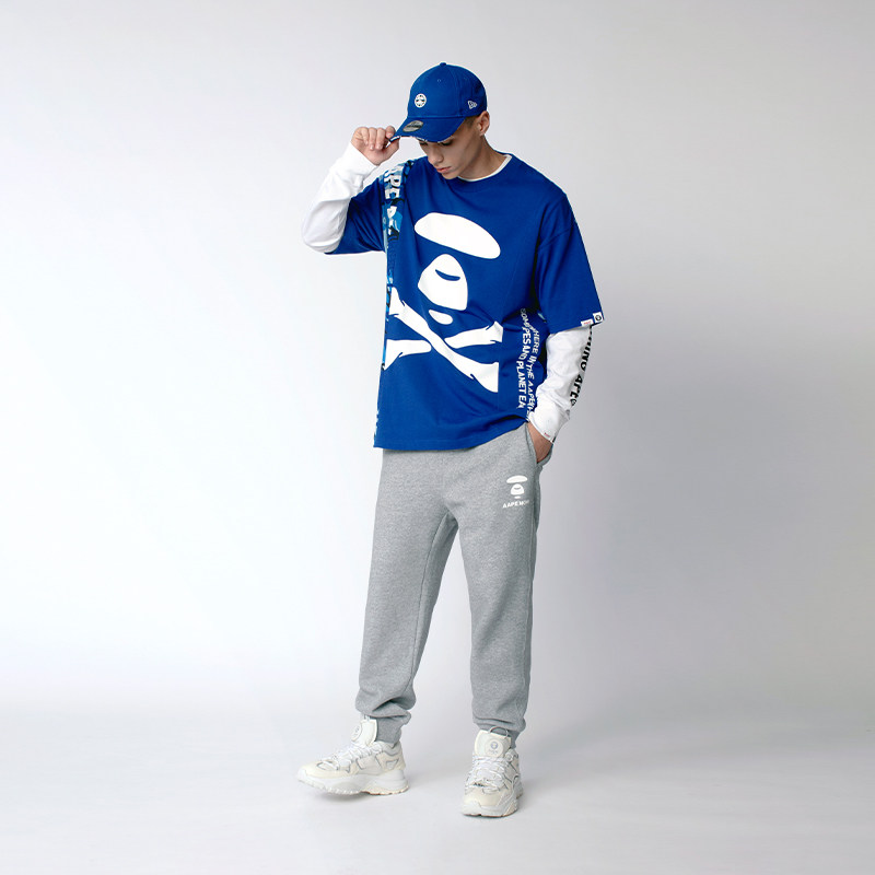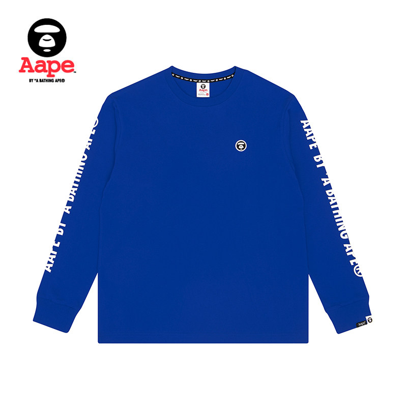 Aape men's autumn and winter ape Yan badge side letter printing trend long-sleeved T-shirt 0379XXD