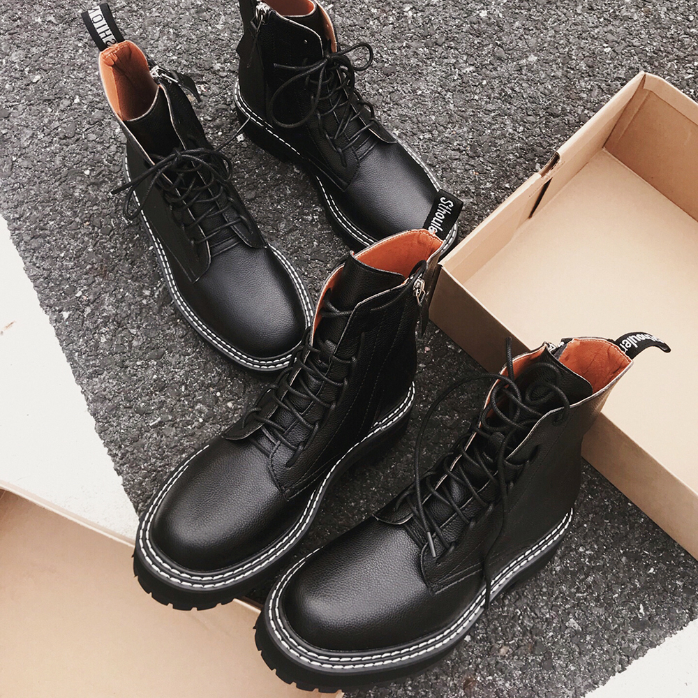 Martin boots female ins2021 new wild boots early autumn English wind thick bottom inner height short tube leather black