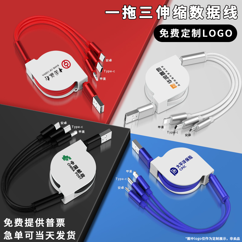 1 drag 3 charging wire can be scaled three-in-one fast charging type-c Android data line gift custom logo for Apple Long One Drag Three Charging Line custom gift can be printed 8