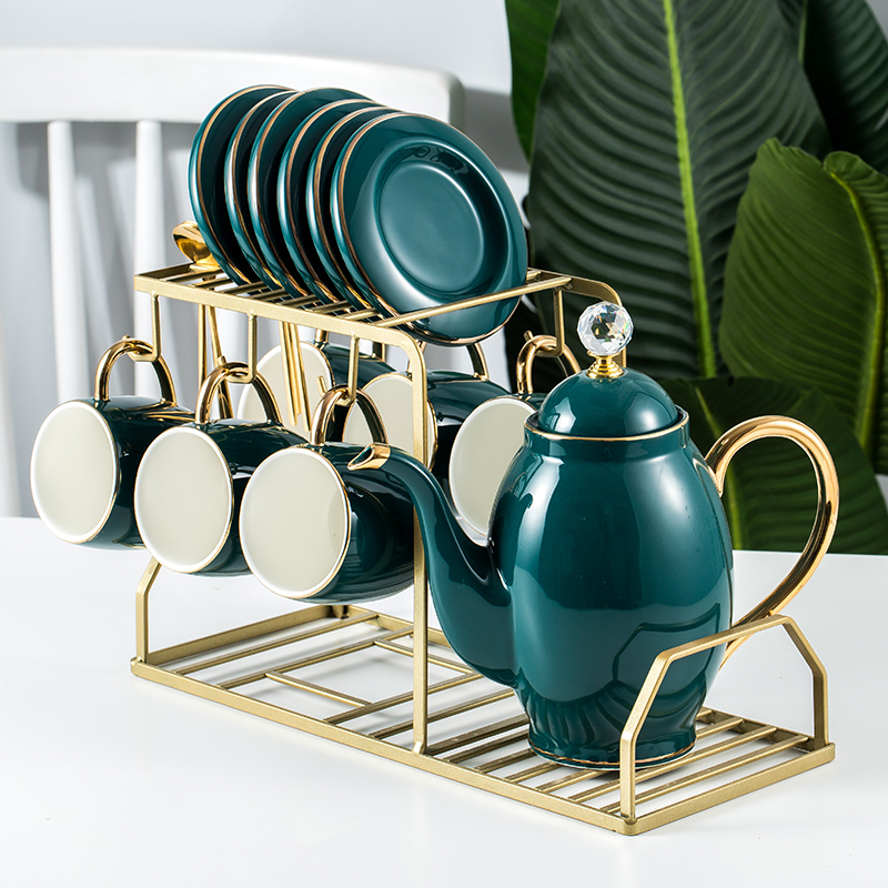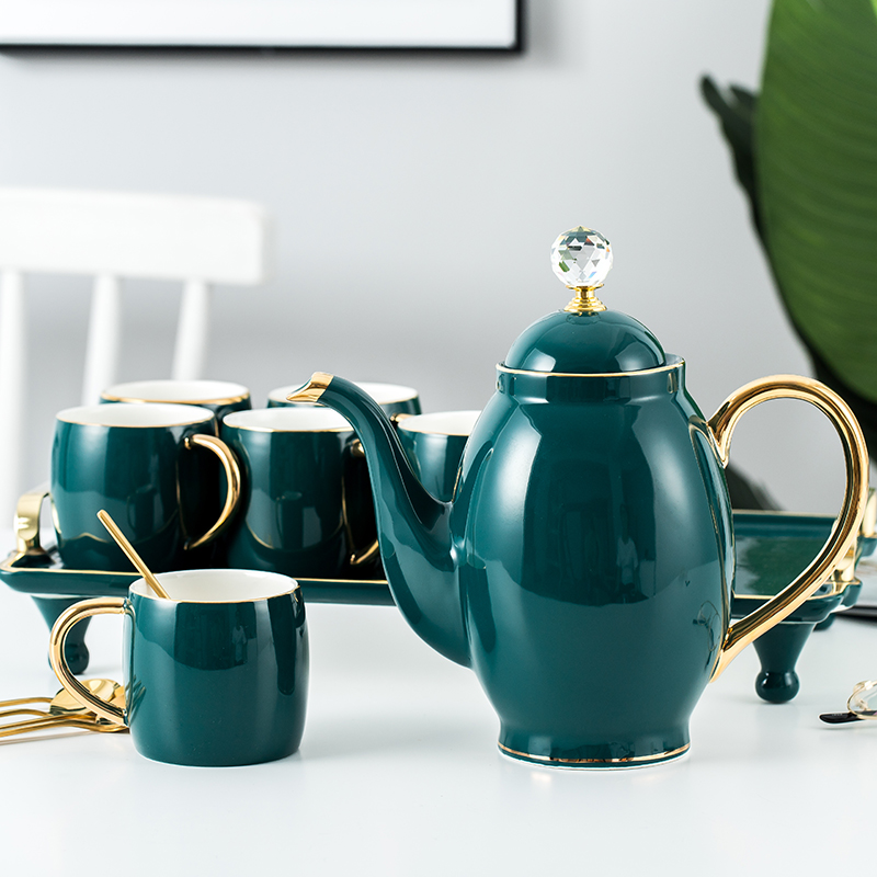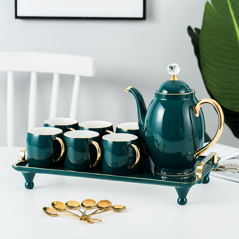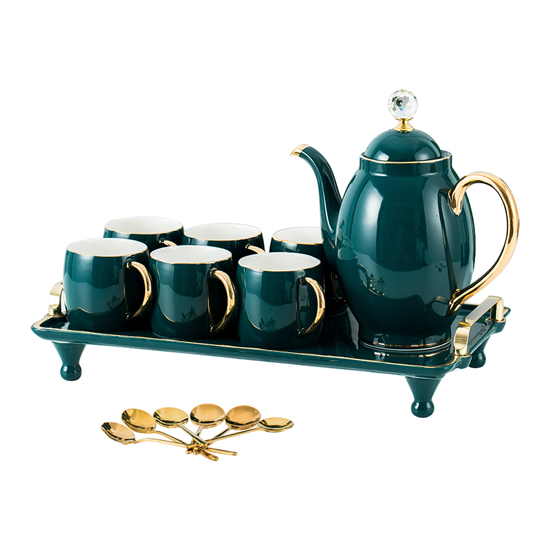 Malachite green 6 cups spoon 1 pot 1 tray Malachite green 6 cup saucer spoon 1 pot