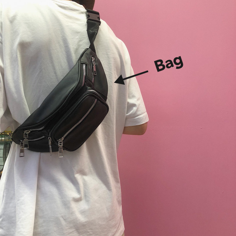 Male New Leather PU Backpack Slipper Sackbag Sports Bride Boomer Tide Street Trend Hip-hop Phone Chain Chain