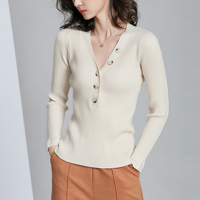 Miama Shiman 2022 autumn new women's clothing V-neck button long-sleeved knitted sweater slim pullover women's bottoming shirt