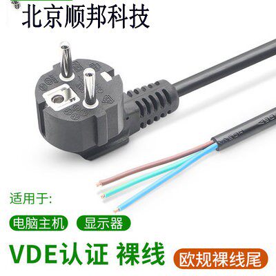 VDE certified UEFA Euro gauge computer power cord 3 Core 0 75 square 1 8 m bare wire tail triple hole Euro gauge plug