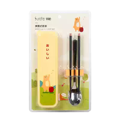 Double gun portable chopsticks student 304 stainless steel chopsticks set of three pieces bear children travel chopsticks tableware alloy chopsticks