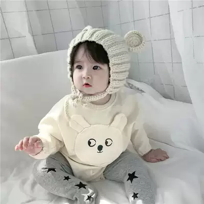 ins Autumn Korean infant bag fart climbing clothes Cute bear loose sweater Men and Women baby animal baby jumpsuit