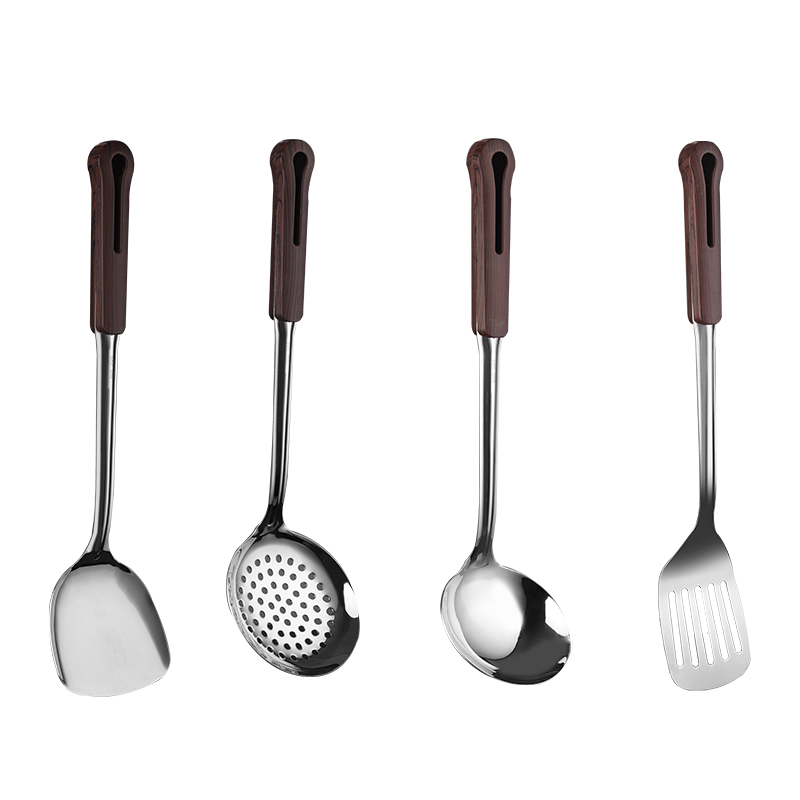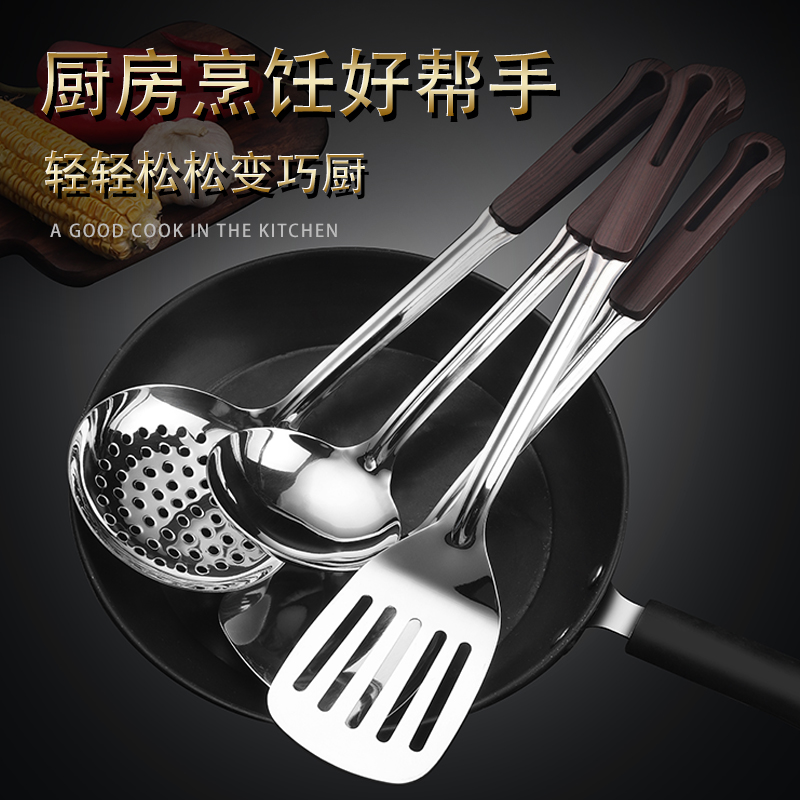 Anti-scalding handle 304 stainless steel pan shovel home kitchen complete set of kitchenware cover set spoon broth spoon iron fried vegetable shovel