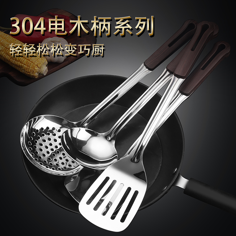 Electric wood handle 304 pan shovel electric wood handle 304 frying shovel electric wood handle 304 soup spoon electric wood handle 304 leaking spoon 2 pieces (pan shovel frying shovel) 2 pieces (pan shovel soup spoon) 2 pieces (pot)