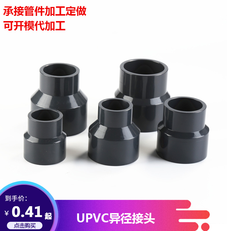 National standard UPVC big small head variable diameter direct heterodiameter straight through long heterodiameter joint accessories Chemical pipe fittings acid-resistant