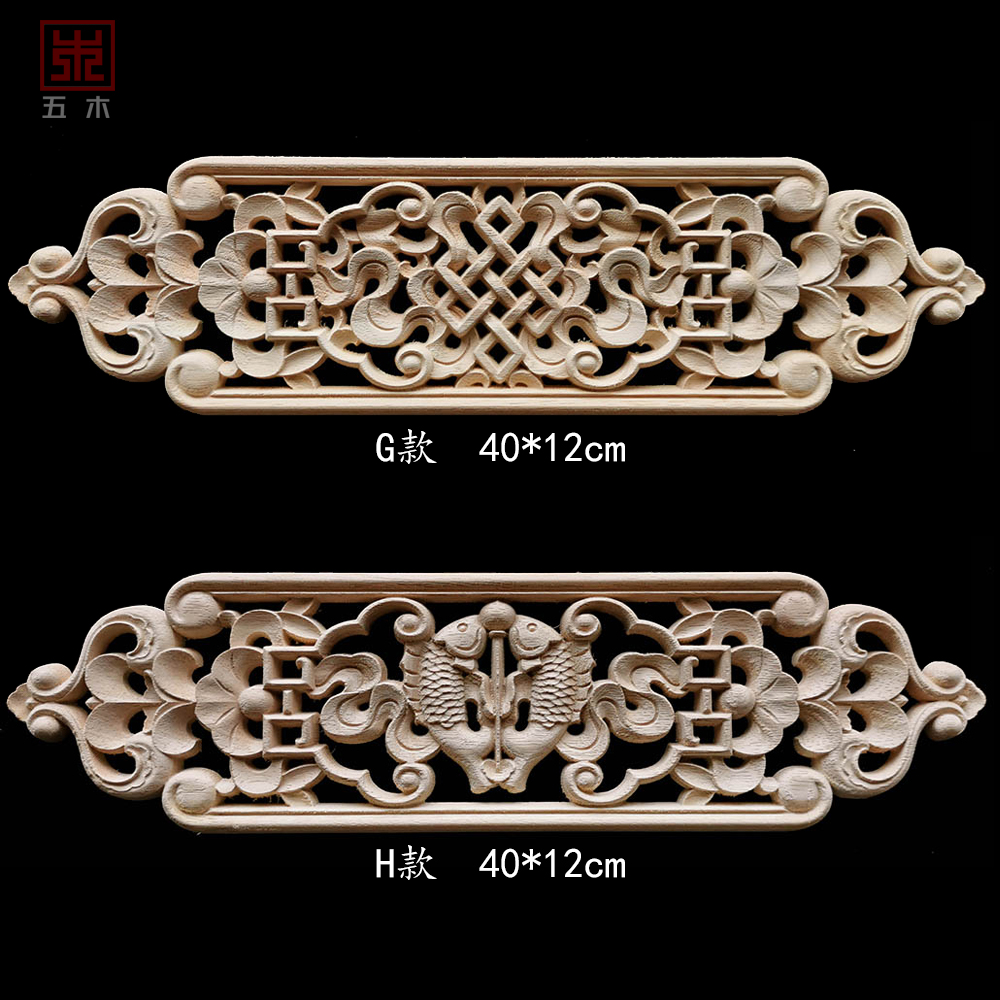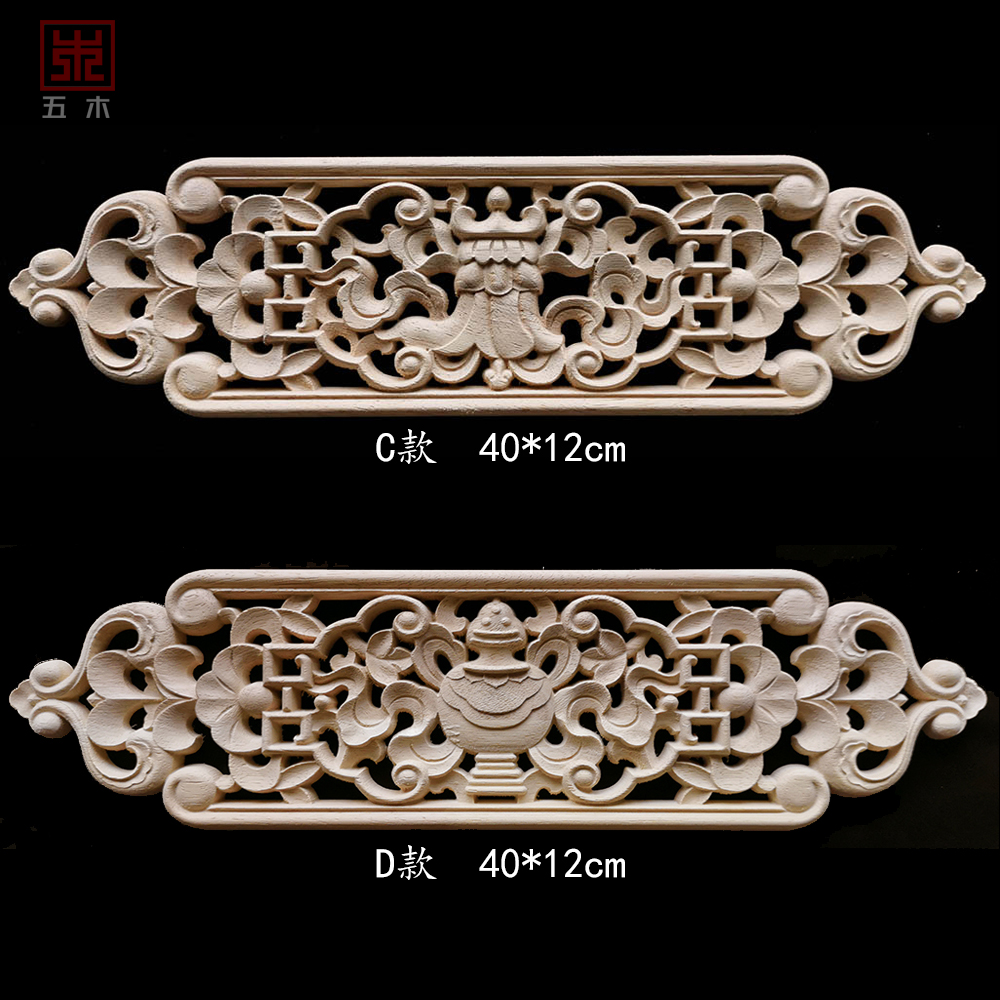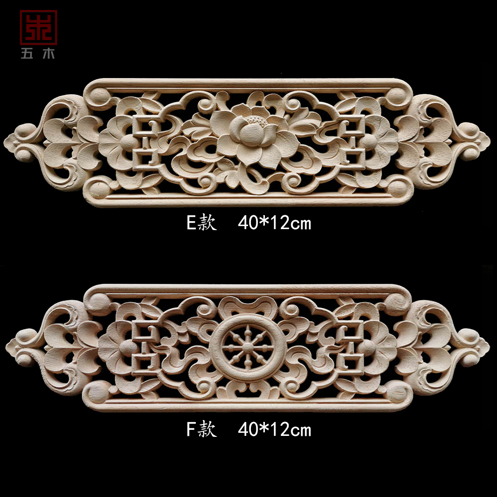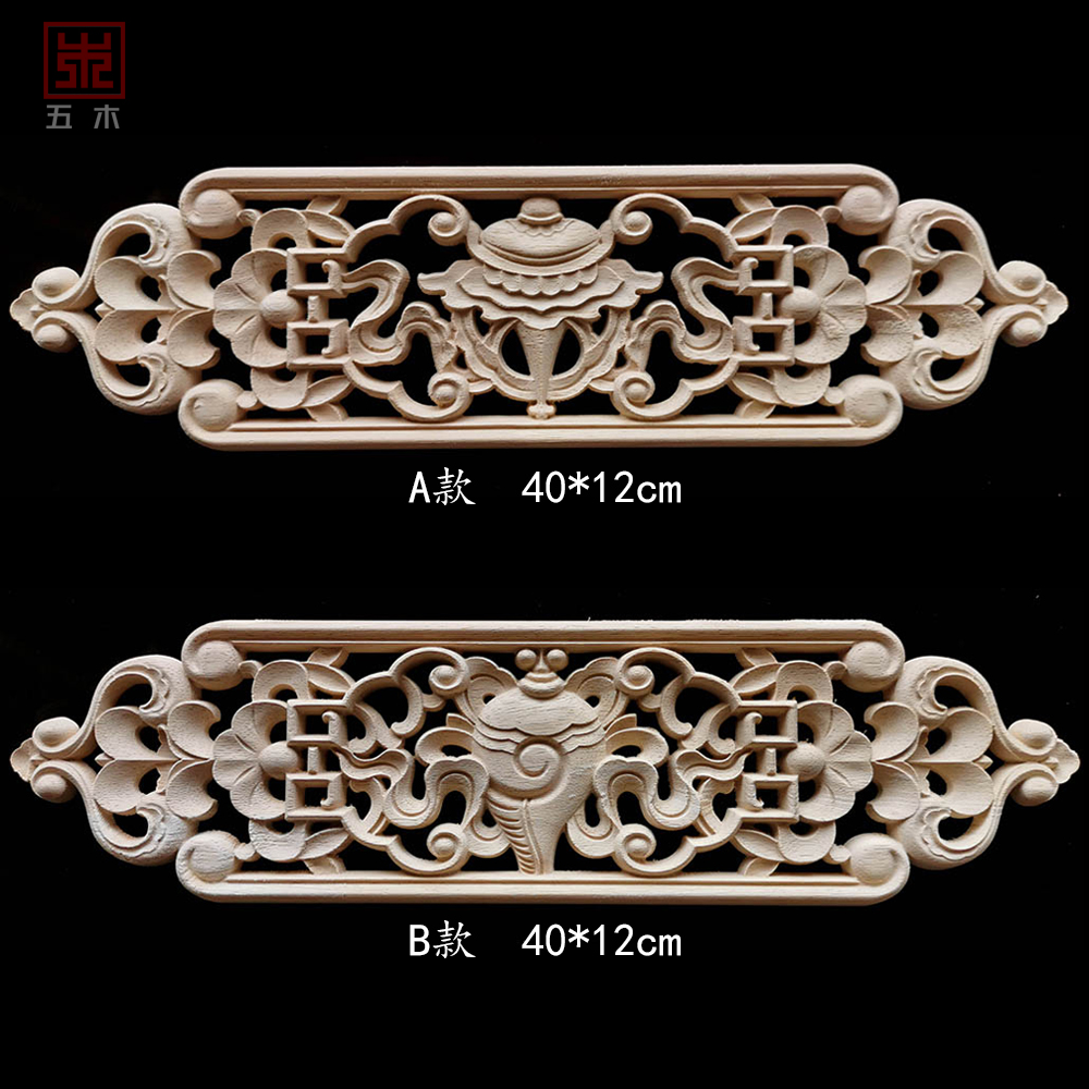 Hidden auspicious Eight precious wood carved flower sheet rectangular hollowed-out applique Chinese solid wood patch European-style wood flower sheet