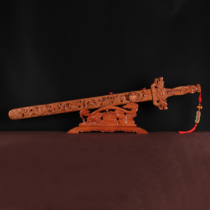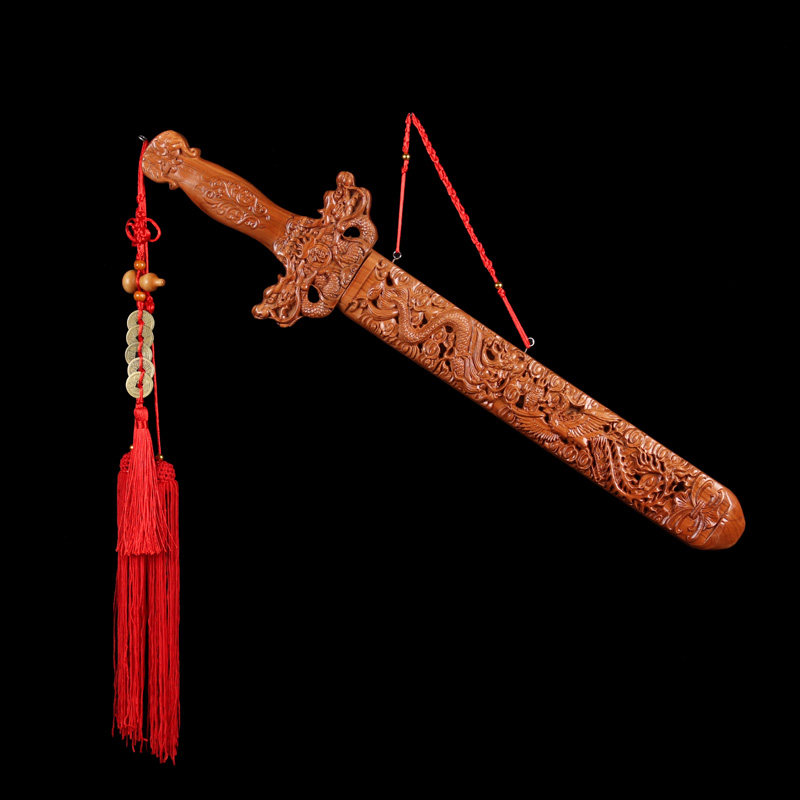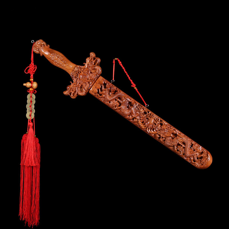 Ji Rongxuan Zhengzong Authentic Peach Wood Sword Swing Piece Plus Base Bracket Moving New Residence Pendant Double Dragon Sword Jo Relocation Decoration Gift