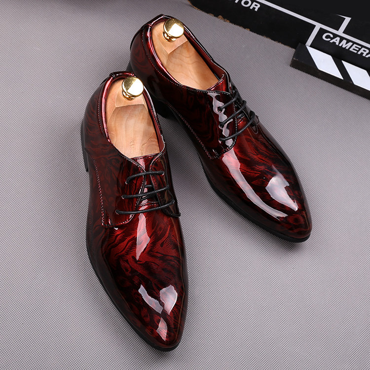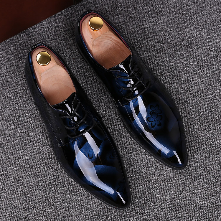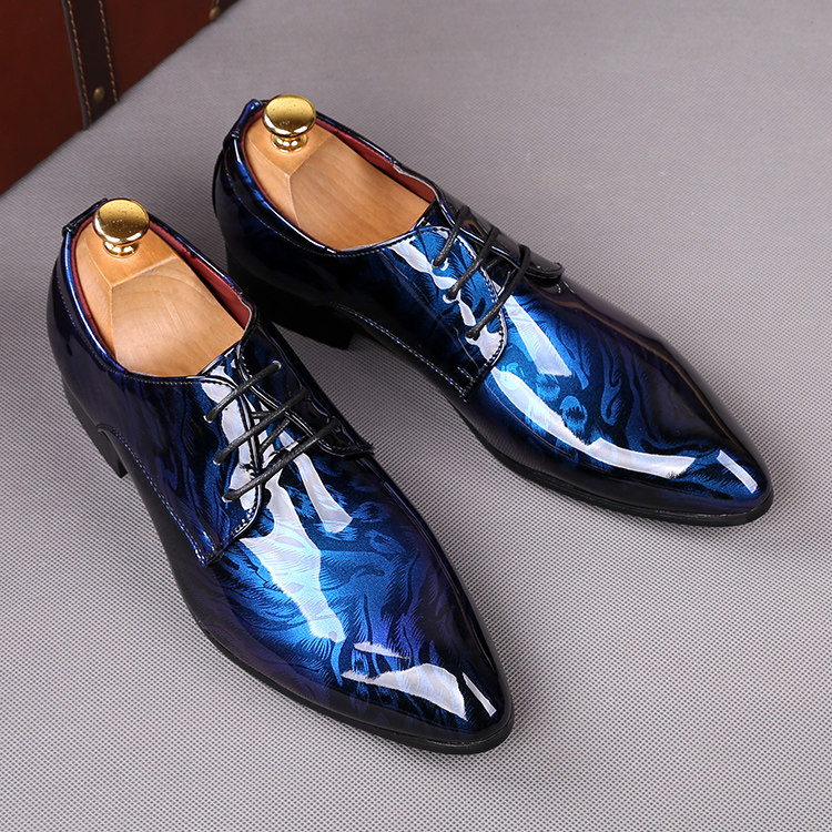 Korean men's shiny dazzling performance casual leather shoes British groom pointed wedding shoes hair stylist men's shoes trend