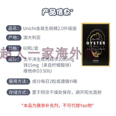 Australia imported Unichi oyster zinc supplement oyster essence capsule 60 tablets male supplement physical strength sperm vitality