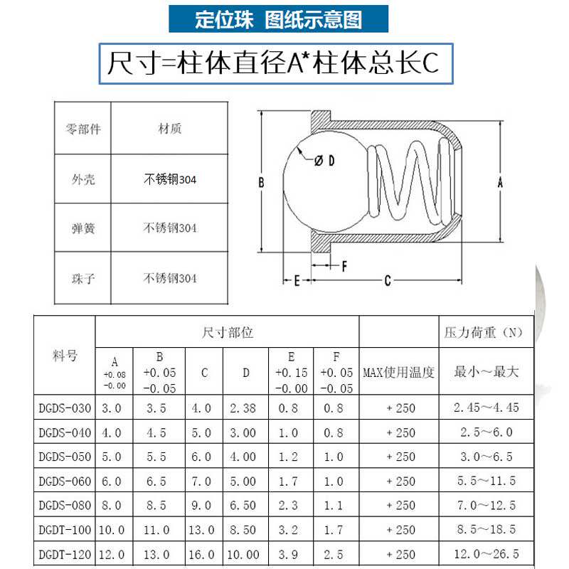 304 stainless steel positioning beading beads pressed in type spring ball head plunger D3-D12 7 fold