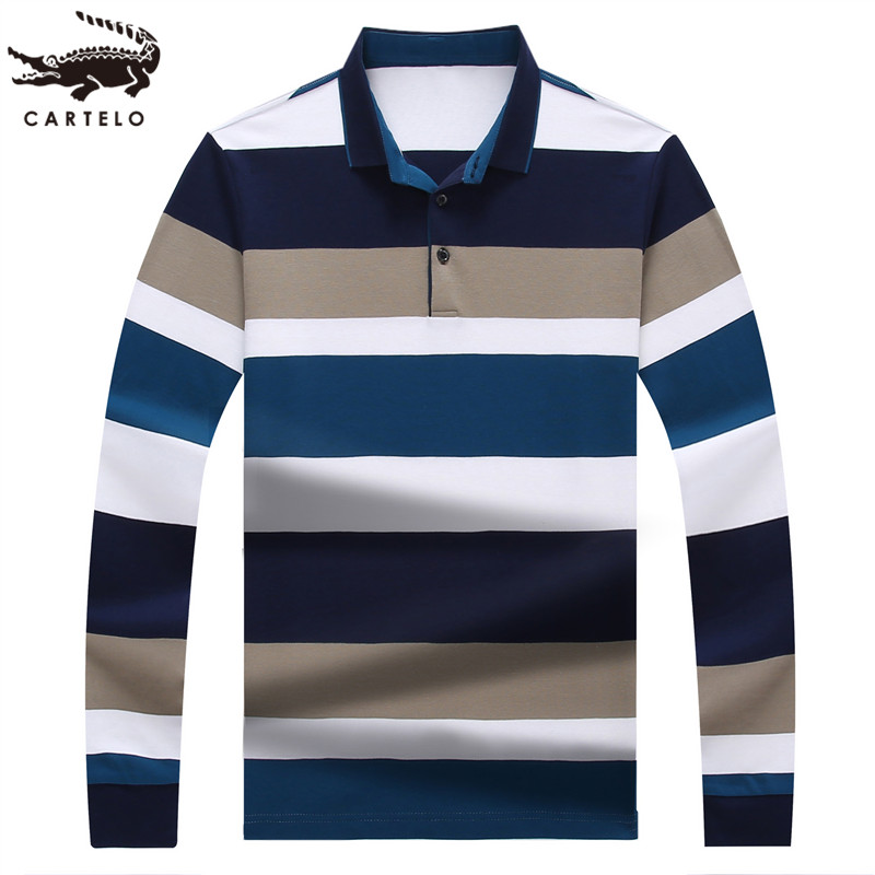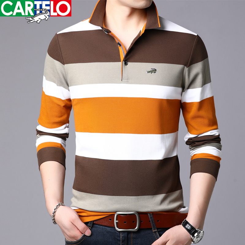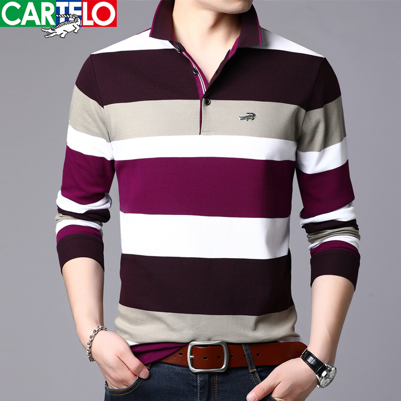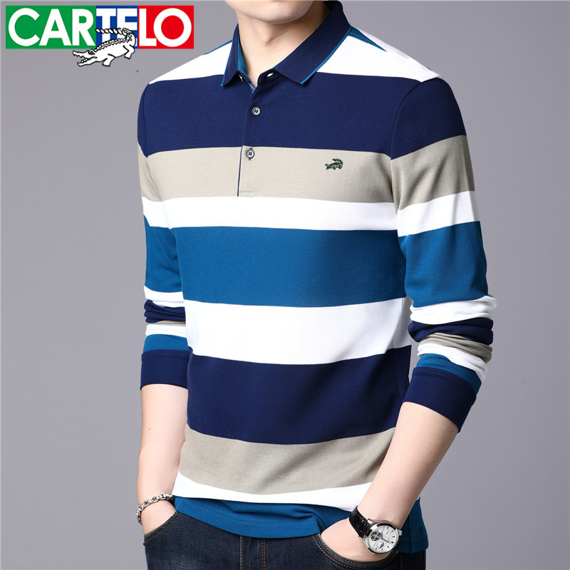Cardilo crocodile long-sleeved T-shirt men's striped cotton lapel T-shirt men's spring and autumn thin casual polo shirt