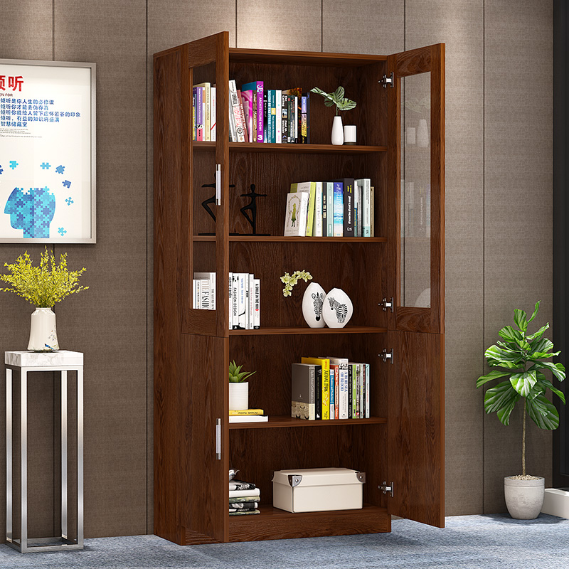 Office file cabinet Wooden office data file cabinet with glass bookcase with lock Household storage storage cabinet