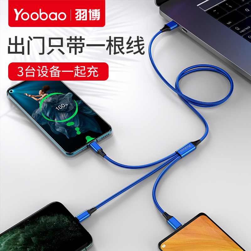 Plume data line three-in-one quick charging three-head charging line two-in-one charge line one drag three-in-three-use multi-head apply Apple Huawei Android typec mobile phone multifunction usb universal