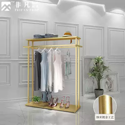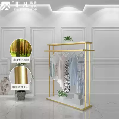 Golden clothing store Nakajima display rack simple solid wood middle floor double row rack double bar side hanging clothes rack