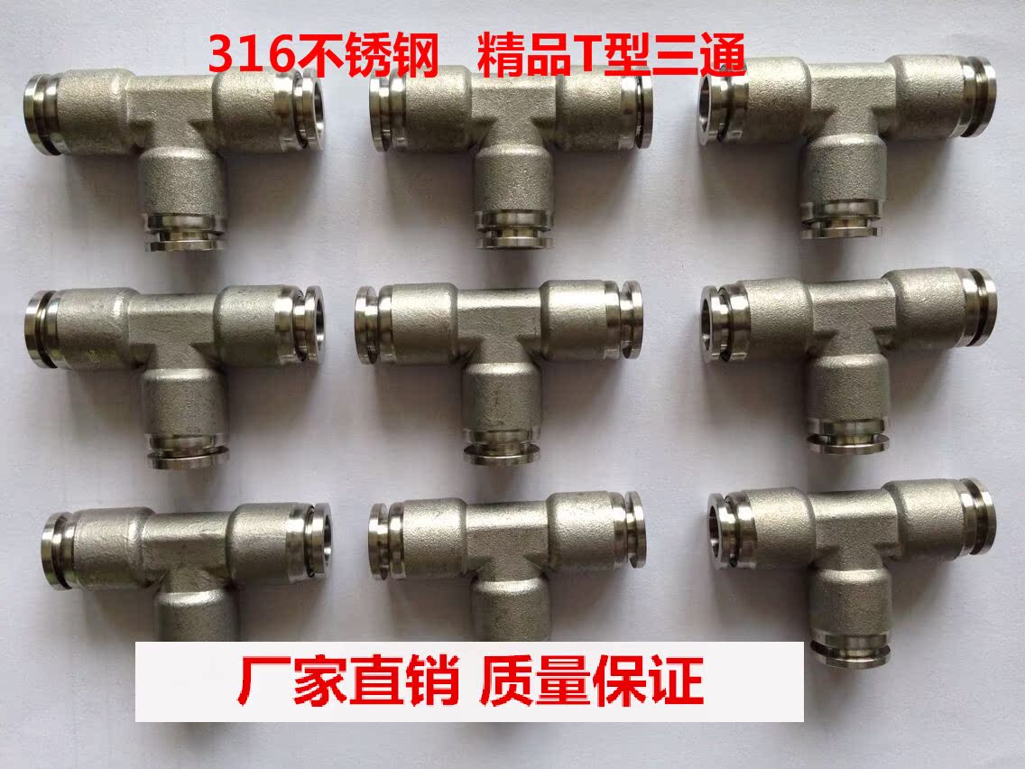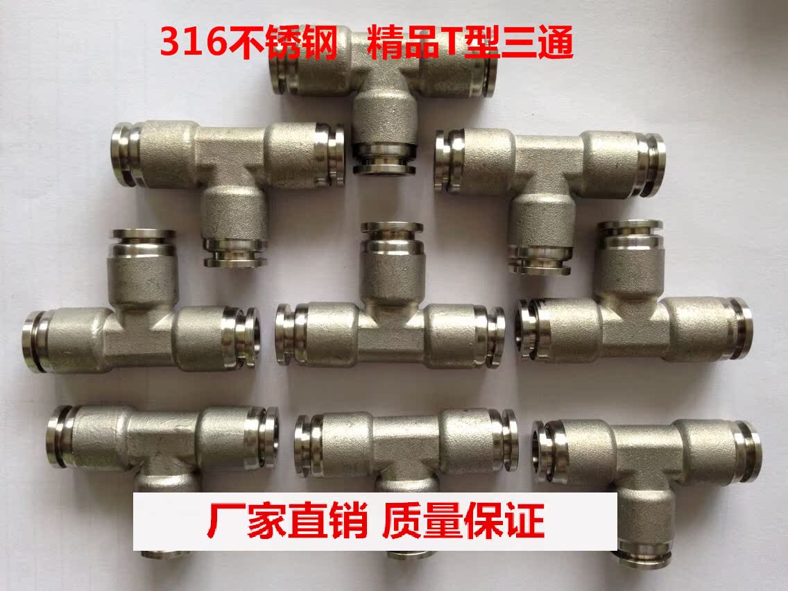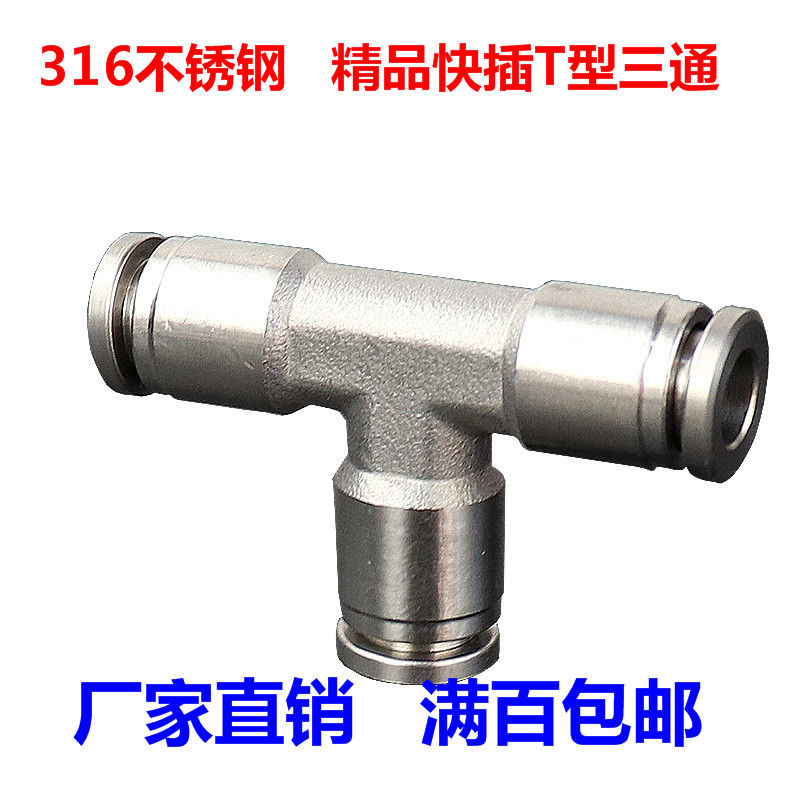 316 stainless steel pneumatic quick-insert T-type Y-tee quick joint tracheot-pipe T-type quick-insert head cross four-way