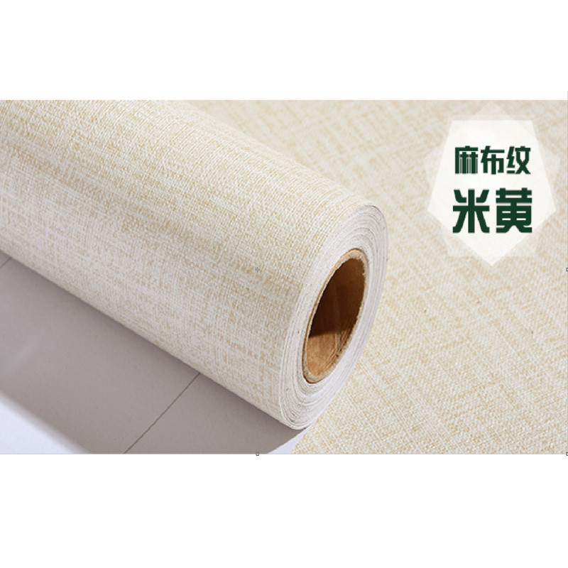 Plain self-adhesive wallpaper living room bedroom hotel wallpaper linen texture thickened waterproof and moisture-proof can be scrubbed solid color wall stickers
