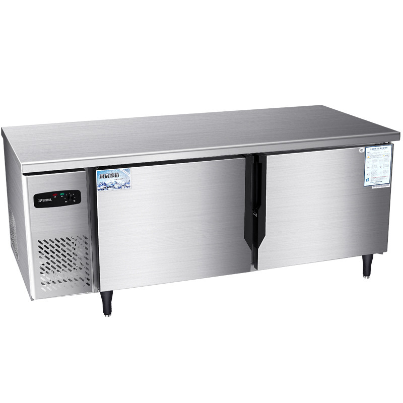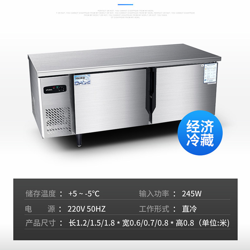 Silver All Flat Cold Operating Table Refrigerated Frozen Bench Straight Cold Freezer Fridge Refreshing cupboard Kitchen Milk Tea Shop Commercial