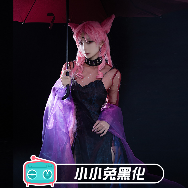 Beauty Less Female Warrior Little Small Rabbit Wig COS Clothing Blackening Dark Ladies Black Lady Gown Suit