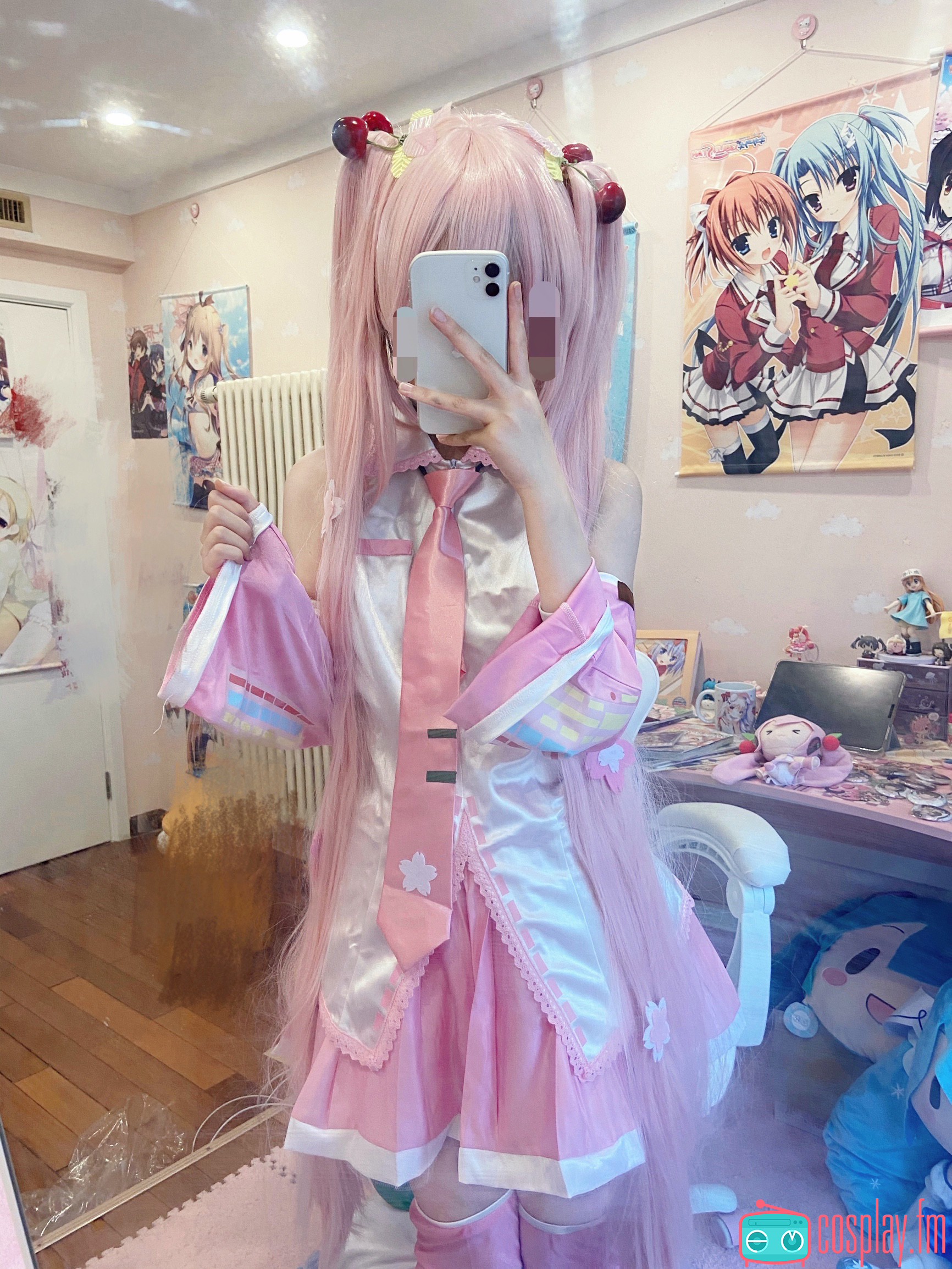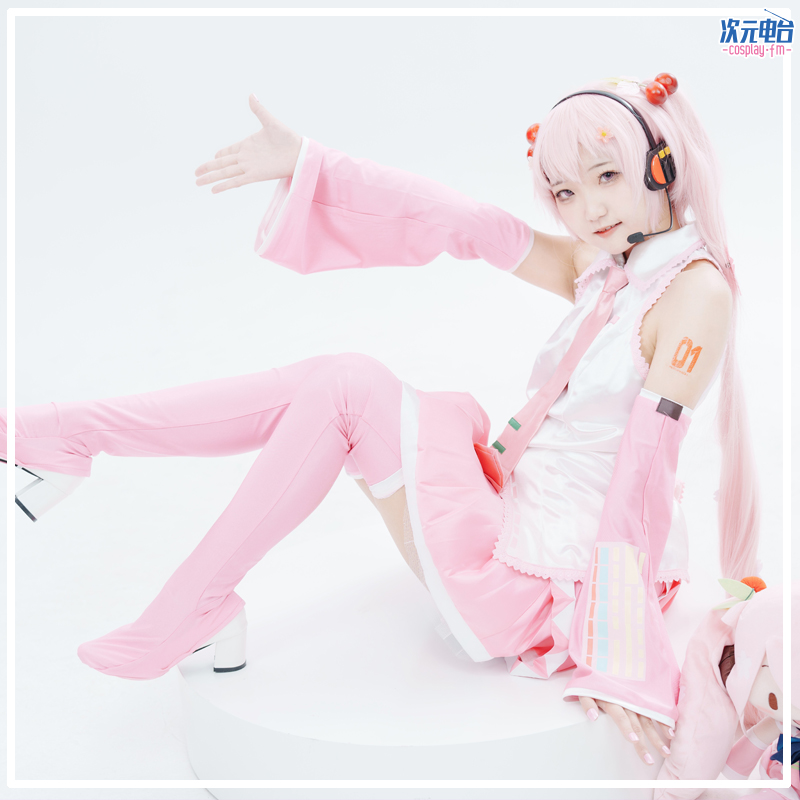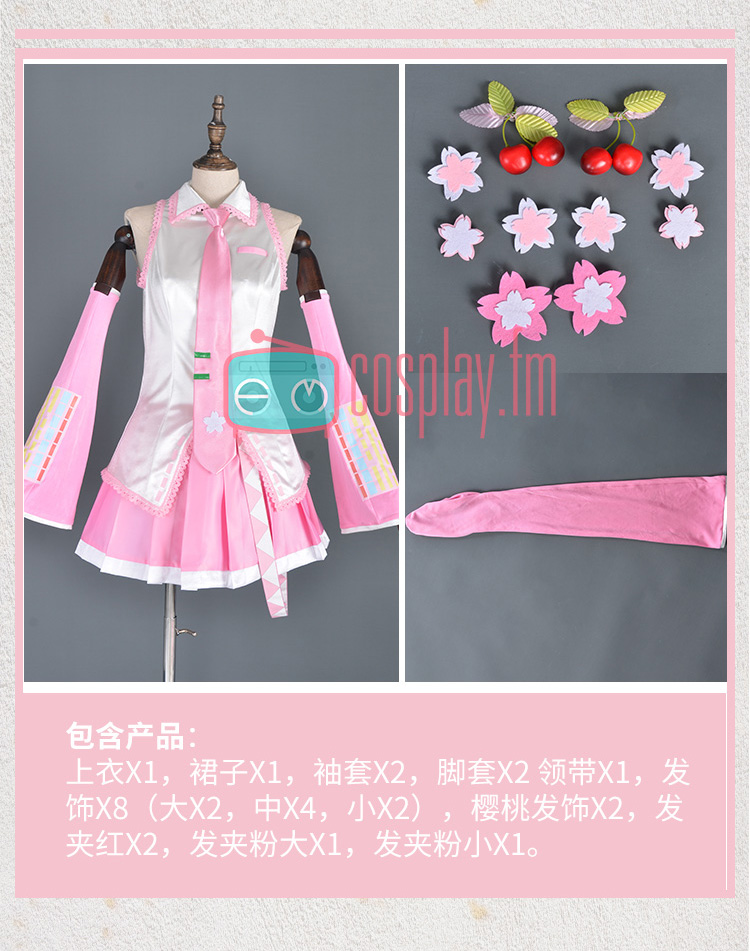 The initial pink cos suit vocaloid initial cherry blossom miku pink cosplay suit V home cos wig