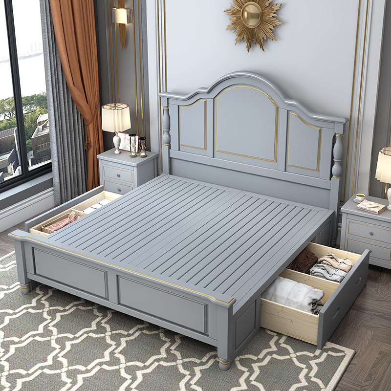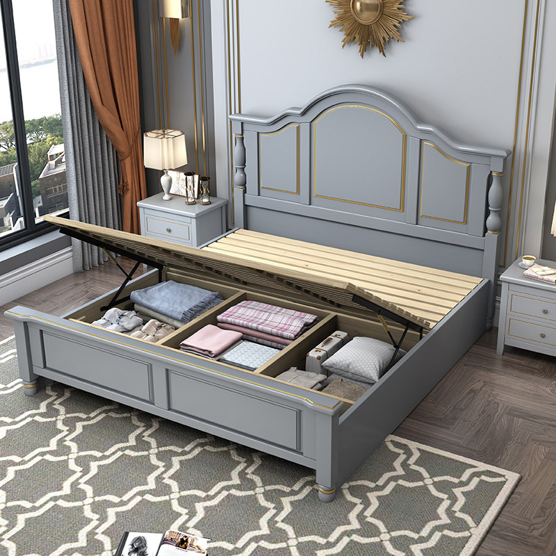 All solid wood bed Modern and simple 1 8m double bed Master bedroom 1 5m bed American bed Storage high box Princess wedding bed