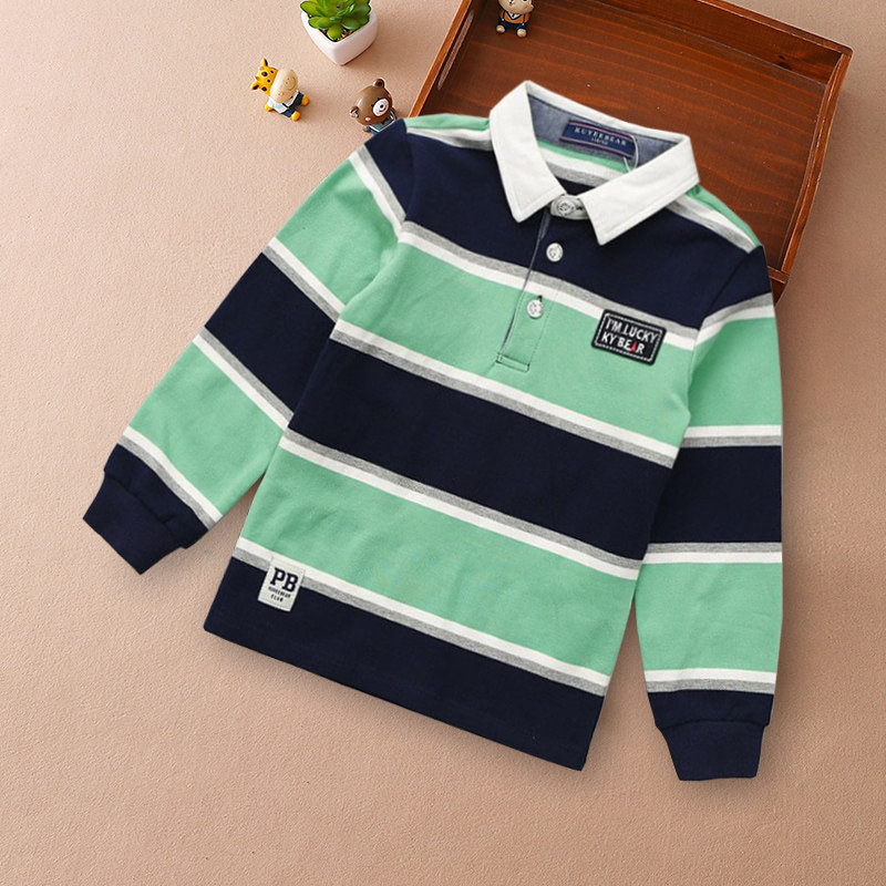 College wind boys dress long sleeve t shirt 2023 new big boy T - shirt rolled POLO shirt handsome striped blouse