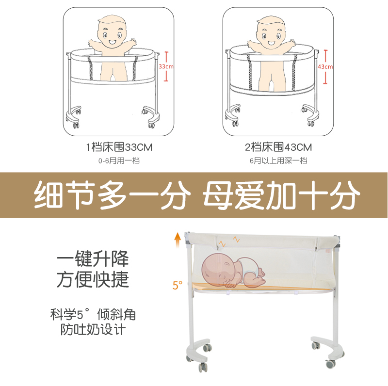 Crib Splicing Large Bed Portable Newborn Multifunction Movable Bed Small Family Type Lunar Sub-Center Sleeping Bed