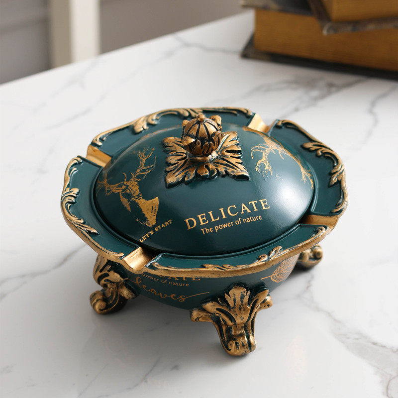 Gold deer with lid cigarette ash tray 363 gold deer toothpick barrel gold deer rotating fruit tray 362 Cuija elk tobacco ashtray (with lid) 389