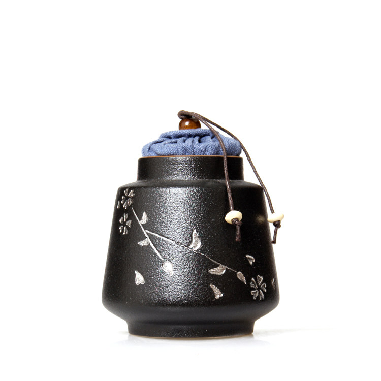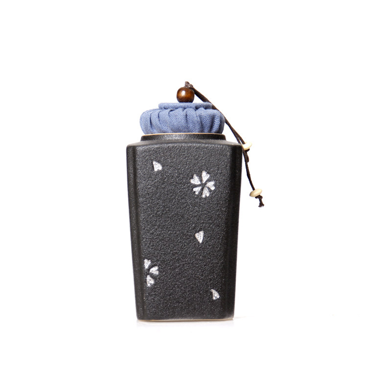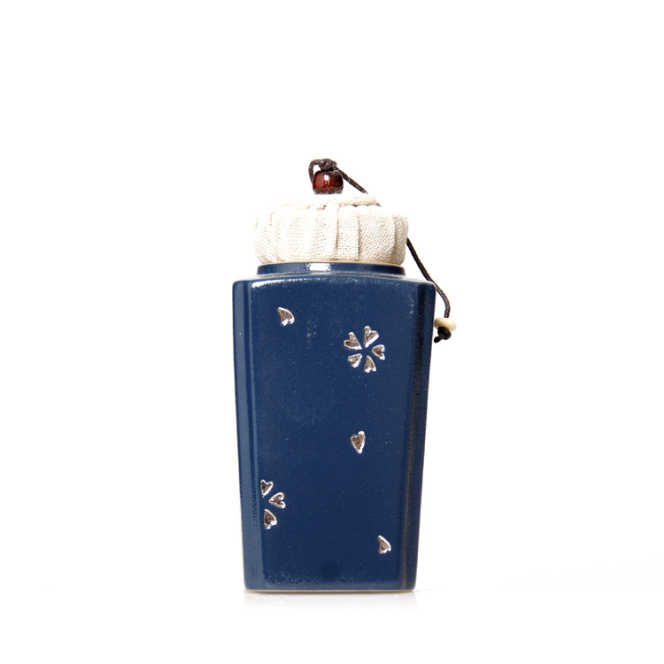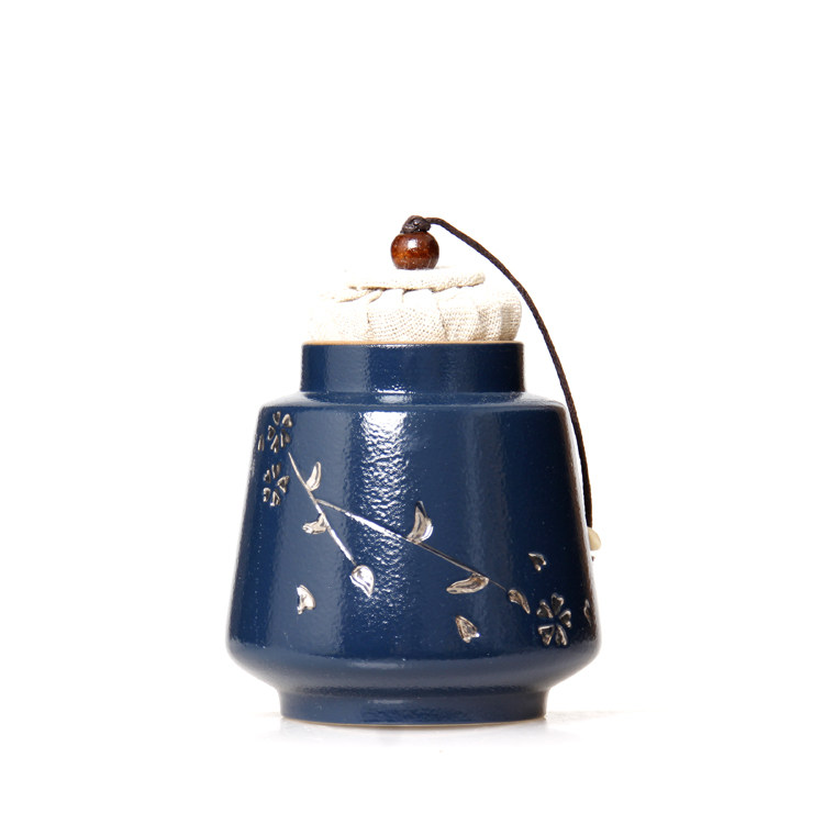 Silver-inlaid coarse pottery ink sacrificial blue square tea pot ceramic tea pot small size tea pot sealed storage tea packaging