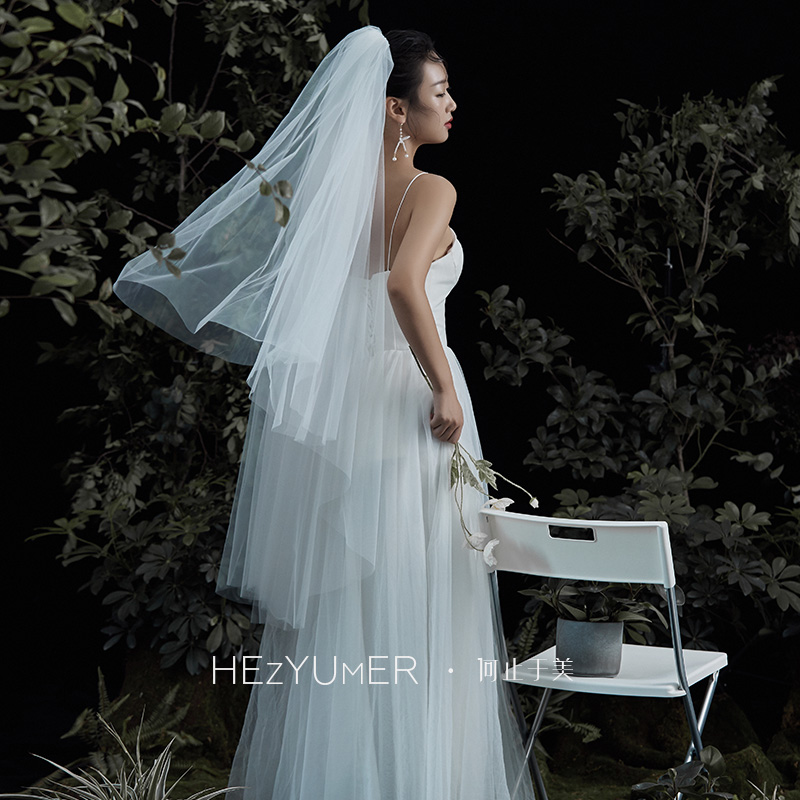 "Suxue" bridal veil Main wedding dress simple headdress Super Xian Sen department photo props long version of the wedding veil