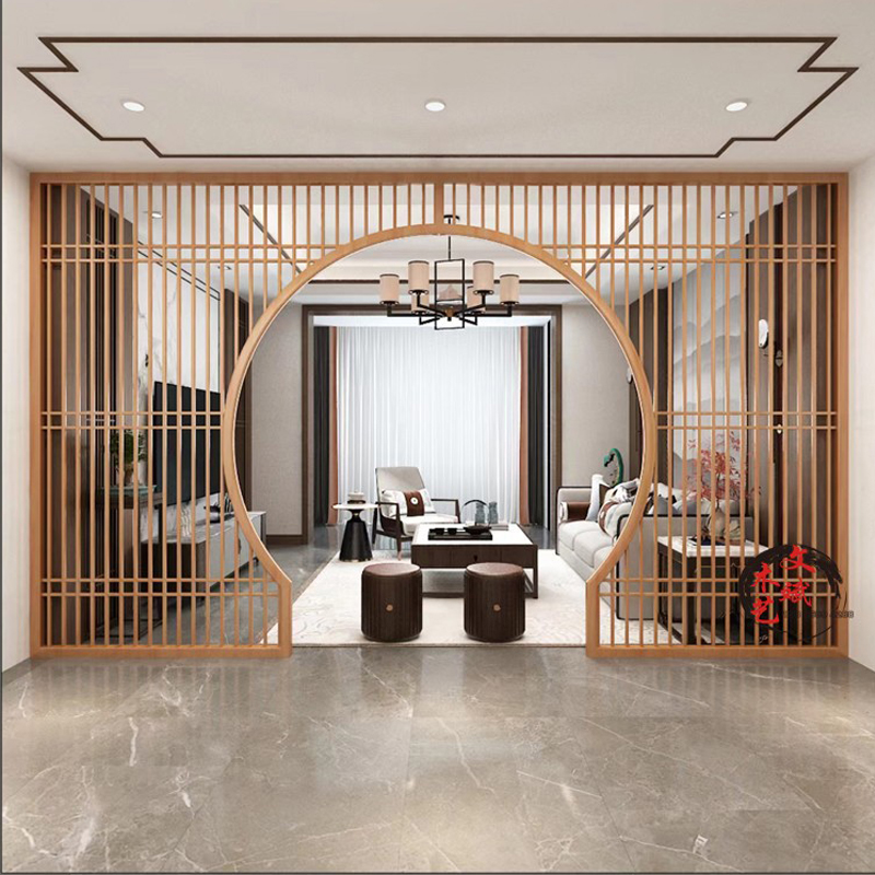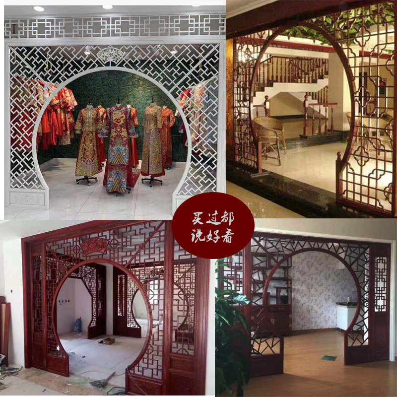 Wood Carving Solid Wood Flower Lattice Moon Cave Door New Chinese Screen Hollowed-out Living-room Partition Antique Moon Door Arches Bogu Frame