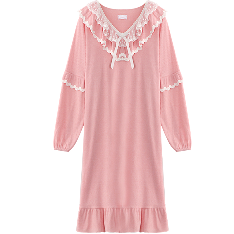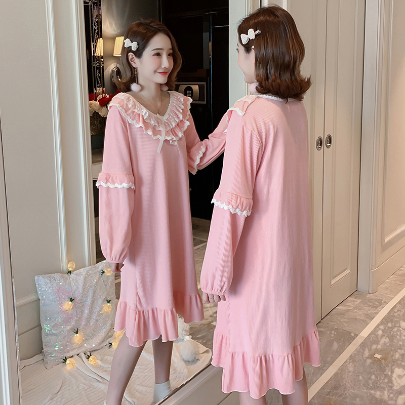 Pajamas women's autumn princess style cotton ladies nightdress is sweet and can be worn outside in spring, autumn and winter, mid-length homewear skirt