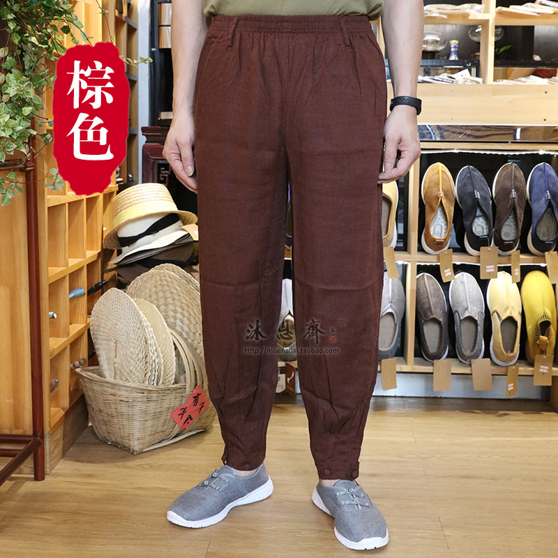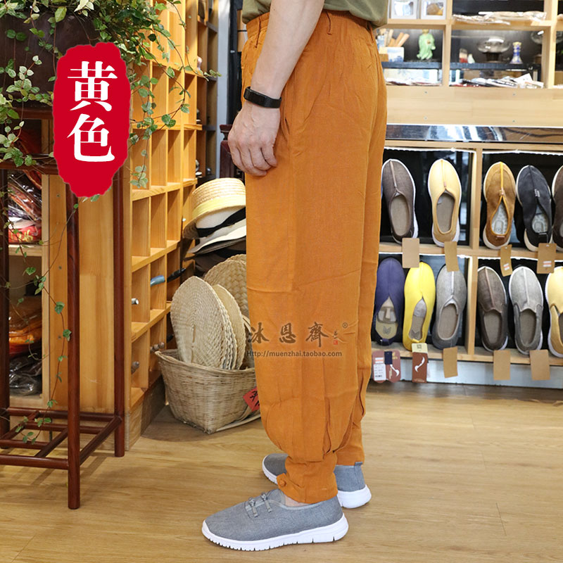 Chinese wind casual pants Cuya trousers long coat-free legs free summer pure cotton broad legs and monk pants