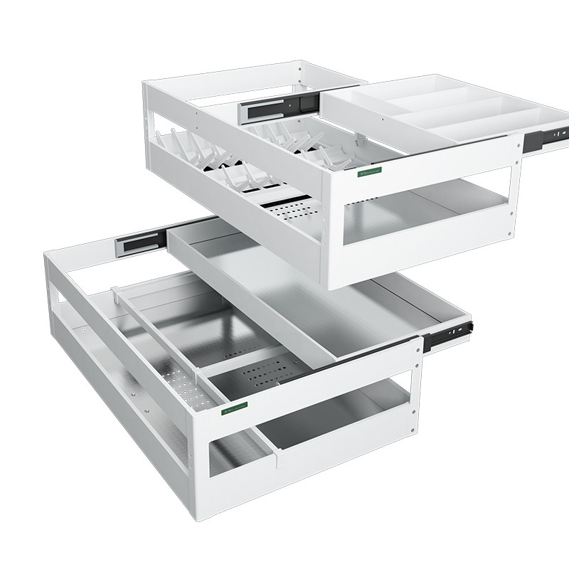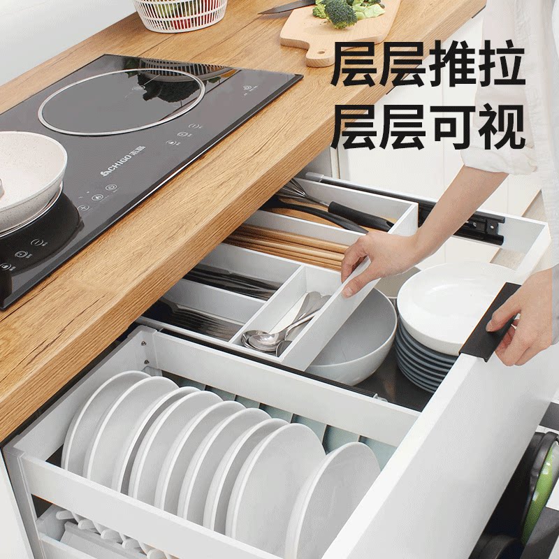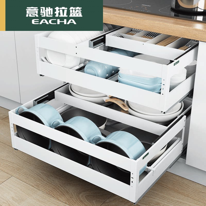 Yichi kitchen overall cabinet bowl basket 304 stainless steel double drawer pull basket Seasoning dishes floor cabinet built-in shelf