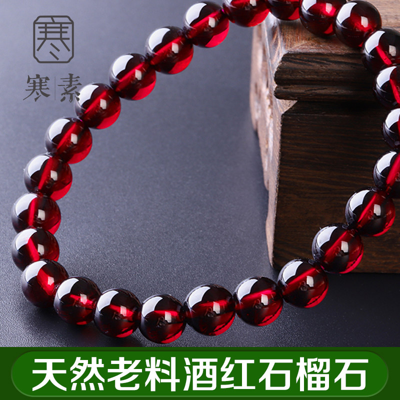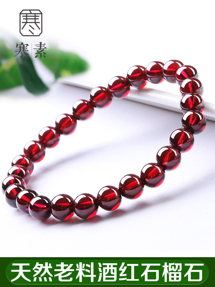 Cold Vegetarian Natural Brazil Old Stock Pomegranate Stone Hand Refining Full Net Body Wine Red Single Ring Round Pearl Handstring