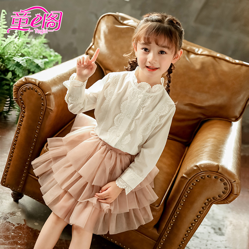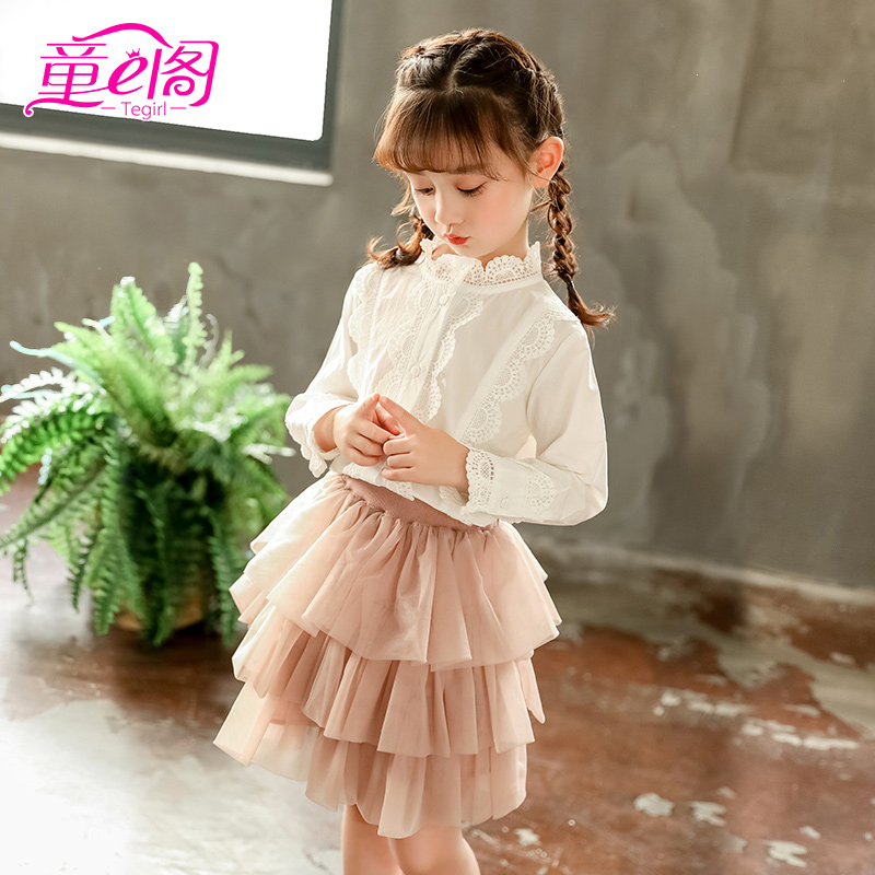Girls' long-sleeved shirt Korean version of the spring new product in the big boy white top cotton lady style children's stand-up collar shirt