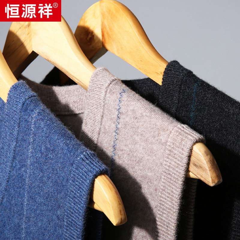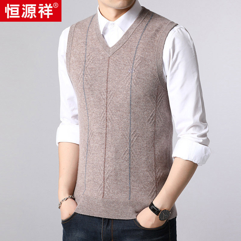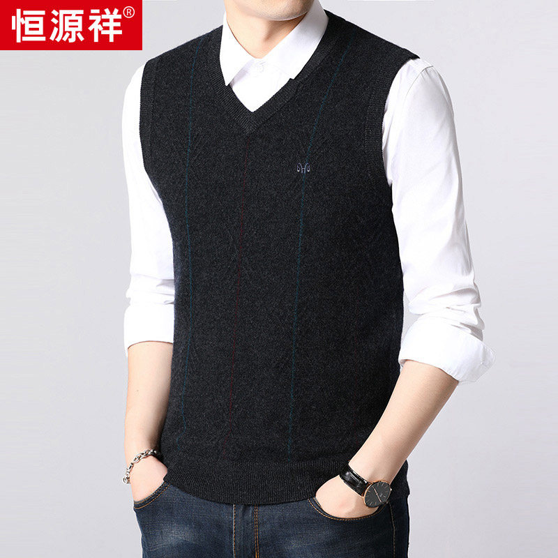 Hengyuan Xiangxiang wool vest male V autumn winter sweater young sleeveless shoulder knitting knitting daddy armored man